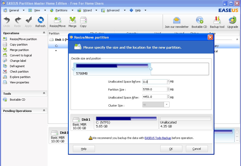 EaseUS Partition Master Home Edition este o aplicatie 100% gratuita si este compatibila pe sistemele de operare Windows 2000 Professional, Windows XP , Windows Vista, Windows 7 / SP1 (32 si 64 bit).